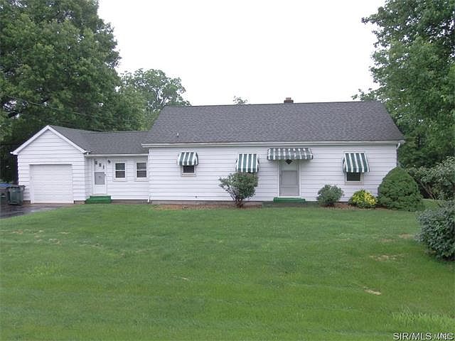 PRICE REDUCED!! 2 BR 1 Bath Ranch w/Full Basement, 1-Car Attached Garage, Enclosed Breezeway that is currently used as Office & has Laundry Hook-up for main floor convenience, Kitchen, Living Room with Arched doorways & hardwood floors. Eat-in kitchen features abundance of cabinets, pantry, dishwasher, refrigerator, stove/range & built-in microwave. Breezeway windows help highlight the kitchen. Full bath with tiled 1/2 wall and back splash and Linen closet. Bedrooms both feature hardwood floors (under carpet in BR 2). BR 2 has his & hers double closets. This Peaceful triangle piece of land backs up to a thin wooded field line so you can enjoy nature in the privacy of your own backyard. Large Detached 48x20 Metal Shed with lower level storage in the backyard allows for optimal storage. Built-in Fish Pond & hand pump well accent the back patio. The hand-pump well does work and pumps cistern water for plants & washing the patio, etc (not drinkable). Asphalt driveway has turn around nook.