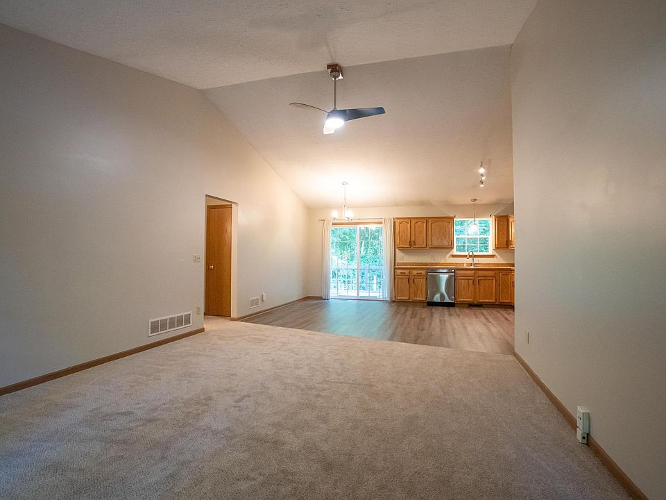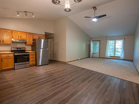 Freshly painted townhome with new flooring and stainless steel appliances. Enjoy the open floor plan, vaulted ceilings and quiet wooded lot. Owner pays sewer, tenant pays water, gas, electric, and trash. No smoking.