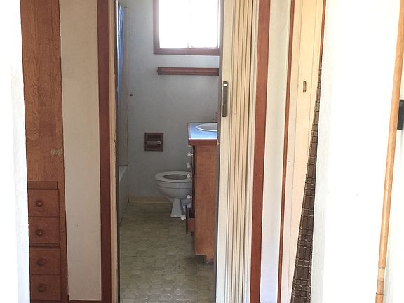 Newer metal roof and vinyl siding. Has basement that use to be 3rd bedroom. Unknown square footage in basement, but is good size. Large back yard with 2 apple trees. Carport. Hardwood floors in bedrooms and living room. House is livable but Needs interior remodel. Don't know sq. Foot of basement but it's fairly large. It does seep. Has sump hole and sump pump. Sump was built into home in 1929. Seepage is typica in rainy season. Needs new windows, new kitchen floor, interior paint, hardwood floors refinished, bathroom remodel.