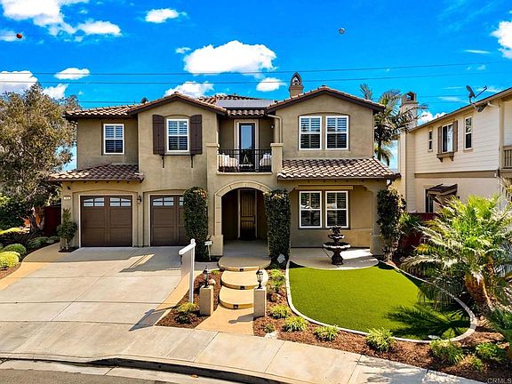 Welcome to this turn-key special nestled on a serene cul-de-sac in Carlsbad, CA, offering picturesque views of canyon and hills. Big Bear's white snow capped mountains can be seen in the winter on a clear day. This beautiful 5-bedroom, 4.5-bathroom, single-family residence spans 3,888 sqft which includes 3 en-suites (1 on the main level) and combines modern luxury with breathtaking surroundings. The large kitchen features stunning granite countertops perfect for culinary adventures and casual dining. A gorgeous circular staircase leads to four spacious bedrooms and a versatile loft upstairs, ideal for both relaxation and productivity. Step outside to enjoy the tranquil views and spacious surroundings, completing the perfect Southern California lifestyle experience. The home is equipped with duel zoned central AC for year-round comfort as well as a whole house fan. Enhanced security is provided by a full house security system by Cal Security, complete with newly replaced batteries. Enjoy the ambiance of two gas fireplaces—a double-sided fireplace in the living room and a traditional fireplace in the family room. Recent upgrades include a new back fence, an expansion tank added to the water heater for improved efficiency, freshly painted exterior trim, new carpet throughout and upgraded low maintenance landscape in the front and back. Additional highlights include an epoxy floor in the garage, impressive vaulted ceilings, custom designer window treatments and hickory hardwood floors. Outside, discover an outdoor kitchen that was just resurfaced to perfection, great for entertaining guests and enjoying the stunning view. Routinely serviced HVAC ensures year-round comfort, including a recent water heater flush. Located in a highly sought-after Carlsbad neighborhood and school district, this home combines luxury living with practical features. Experience the essence of Southern California living—schedule your showing today to explore all that this exquisite home has to offer!