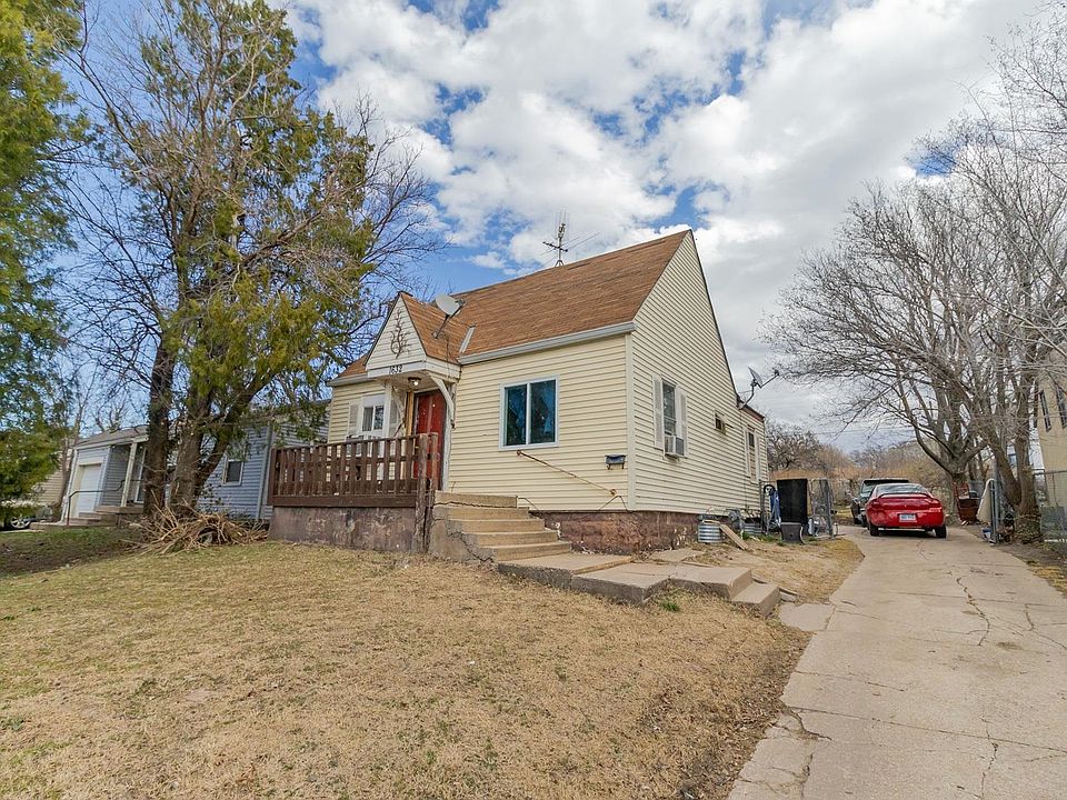 THIS PROPERTY IS BEING OFFERED IN A MULTI-PROPERTY AUCTION VIA LIVE STREAM WITH REAL TIME BIDDING, AUCTION BEGINS AT 5:30 PM ON MARCH 21ST, 2024. ONLINE BIDDING IS AVAILABLE THROUGH SELLER AGENT’S WEBSITE. PROPERTY IS SELLING WITH CLEAR TITLE AT CLOSING AND NO BACK TAXES. PROPERTY PREVIEWS AVAILABLE. This 2-bedroom, 1-bathroom home offers a front deck, mature trees, and a driveway for off-street parking, and is only a few blocks from Wichita State University! Inside is a living room, formal dining, and kitchen, with an eating space. Two bedrooms and a full bathroom, with a tub/shower combo complete the main floor. The basement is full and unfinished but offers plenty of storage space and laundry hookups. This home is currently rented for $460/month on a month-to-month basis. ($450/month plus $10 liability monthly) Per seller, this home has a new electrical box. Tenant would like to stay. SELLER FINANCING OPTION: Seller will offer owner financing on this property for a term of 10 years at 7% with 1/3 down at closing plus a $10,000 origination fee. The origination fee and Buyer premium will be added to the final bid price prior to determining the 1/3 down payment with no pre-payment penalty. Per Seller and lease documentation no deposit will transfer. Lease documentation can be found in the Supporting Documents. *Buyer should verify school assignments as they are subject to change. The real estate is offered at public auction in its present, “as is where is” condition and is accepted by the buyer without any expressed or implied warranties or representations from the seller or seller’s agents. Full auction terms and conditions provided in the Property Information Packet. Total purchase price will include a 10% buyer’s premium ($1,500.00 minimum) added to the final bid. Property available to preview by appointment. Earnest money is due from the high bidder at the auction in the form of cash, check, or immediately available, certified funds in the amount $5,000.