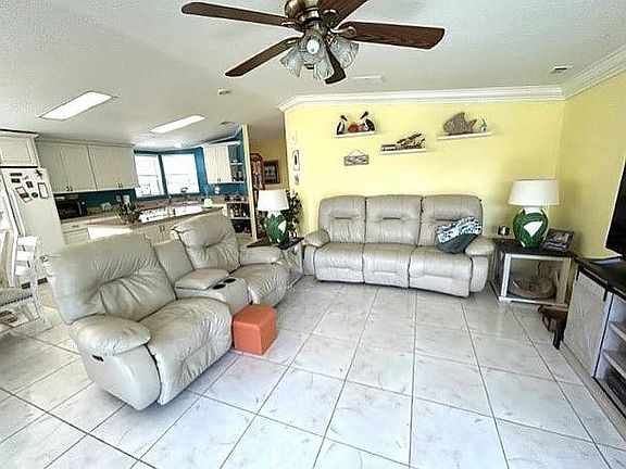 2BR 2BA plus a den 1624 sqft, unfurnished, this home is made for entertaining, open kitchen and living areas, loads of updates, beautifully decorated, large rooms, high end tile through out, new dishwasher, new washer and dryer, one car garage, screened lanai, covered carport, patio, updated kitchen in 2016, new water heater, 2020, new AC 2021, new roof on main house, carport and lanai, golf cart included. Watch the wildlife from your living room