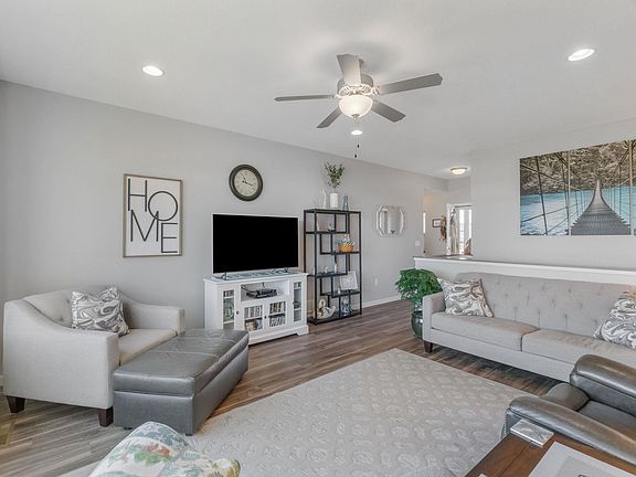 This like new ranch in the Wild Horse neighborhood, is the home you've been looking for! Entering from the covered front porch, you'll be drawn by the natural light into the living room, with space for everyone. The fantastic kitchen featuring quartz countertops and a walk-in pantry is perfect for meal prep or gathering, with the large island and generous dining area with a slider to the deck. The deck overlooks the large back yard with raised garden beds and room to run. The main floor is also home to 3 bedrooms and 2 full baths, including the master suite that checks all the boxes with the great walk-in closet, and large master bath with dual sinks. Stepping downstairs, you'll find more room to entertain in the large family room, featuring daylight windows and a wet bar. Around the corner is a 4th bedroom and 3rd full bath. Storage is abundant throughout, with a great storage room in the basement, as well as built-in shelves in the garage, along with a workshop space. Schedule your showing today and discover your new home!