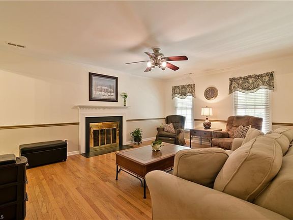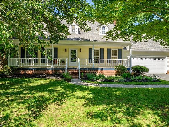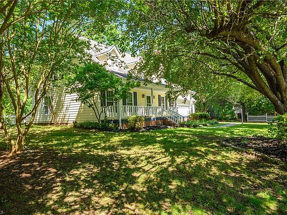 Beautiful Cape Cod style Home with large rocking chair front porch. Fenced back yard with patio, Trex deck and utility room. Garage has wall mounted steel cabinets and shelves and a door conveniently opens onto patio area. Both house and garage feature pull down attic access for ample storage. This home boasts 4 bedrooms with primary walk in closet, 3 1/2 baths providing space for family and guests. Recently updated kitchen with modern under-lit cabinets, black stainless appliances, granite countertops with tile backsplash, sizable pantry and slow close doors and drawers throughout. Located in a peaceful, established neighborhood with community pool membership available. Excellent access to all Triad locations, local amenities and schools.
