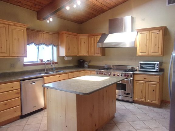 CAMP VERDE, 2,000sqft home, 2,400sqft garage with guest home on 1.25 acres. Large kitchen with plenty of cabinets and counter space, large gas range and island. Utility room has counters and cabinets. Master bedroom is open with a large picture window for the view, a gas fireplace and a door to covered patio. Walk-in closet has plenty of space, extra deep jetted tub and custom tiled walk-in shower. Guest rooms are spacious and have ceiling fans. Home has wood beamed ceiling Guest studio has sauna and a walk-in tiled shower, small sink in main room and skylight and several windows for added light. The garage/shop has bath with walk-in shower, full kitchen and an 8x16 freezer/refrigerator. Two 10x10 roll-up doors. Landscaped front yard w/ walkways and views of the mountains from the patio.