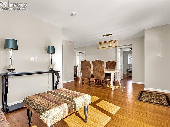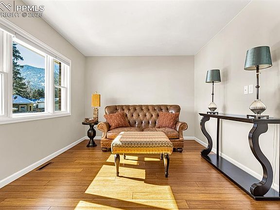 You'll be amazed at everything this wonderful home has to offer. From location, local amenities, and tasteful renovations throughout, this home is sure to exceed your expectations. Tucked away in the heart of Cheyenne Canon, you're only minutes from the world renowned Broadmoor Hotel Resort, Cheyenne Mountain Zoo, Historic Ivywild and a stone's throw away from Stratton Open Space. As you enter, your main level has updated bamboo plank flooring throughout the entire home. Your living and dining room combo faces west and offers views of Cheyenne Mountain. Adjacent to the dining room you’ll find your primary bedroom suite with two walk-in closets and an adjoined updated 3/4 bath. Alongside the dining room is a separate laundry room with additional storage. Your kitchen has undergone an extensive makeover including everything from the cabinets all equipped with a soft-close feature, granite countertops, fixtures, tile backsplash and all appliances have been updated and replaced. A second fully remodeled bathroom is available down the hall. Two additional secondary bedrooms adjacent to the kitchen, including one with a walk out to your private backyard. The home's backyard landscaping offers a peaceful retreat with privacy fencing and mature trees. Ready to plant garden beds have been nurtured and awaits the next ambitious green thumb. Roof replaced in 2021, garage addition in 2019, support jacks installed in 2021, reinforced sewer line, Anderson windows, air conditioning, award winning D12 schools, and views for days! With this amazing setting, location and main level living, this rare gem is truly one of a kind.