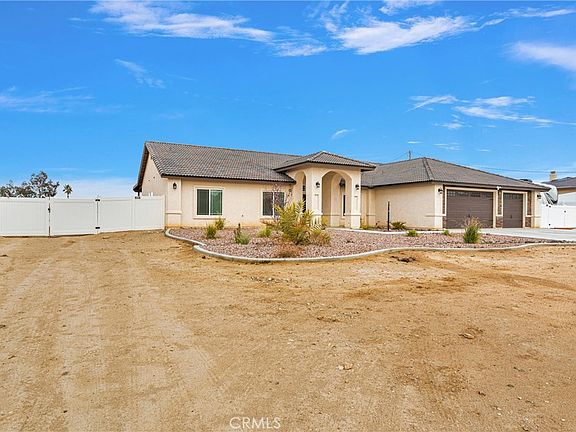Stunning 4 Bed/ 3 full bath home, located in the desired Desert Knolls Community. Only two years old!! Upon entering you’ll be greeted with high ceilings and open floor plan. This home boasts granite counters throughout and luxury wood tile in the main living area. The gourmet kitchen provides abundant counter space and seating with large island and quaint breakfast nook. Open to both the family and living room it’s the perfect space for entertaining!! The master suite is grand having double closets and access to the backyard. Bathroom with dual vanities and soaking tub. The 3-car garage offers ample space for all your toys with beautiful decorative high 5 panel garage doors. Other features include custom build cabinets, tankless water heater, OWNED Solar panels. The backyard has so much potential, with NEW perimeter vinyl fencing and additional concrete added. It’s sitting on just under an acre and ready to be utilized. Don’t miss out, this property will make you feel right at home!!