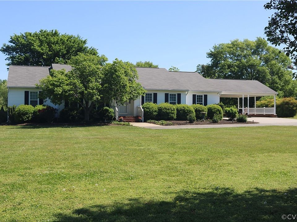 PEACEFUL COUNTRY LIVING, yet conveniently located within minutes of Hanover Courthouse (4 miles). This BEAUTIFUL, LARGE CUSTOM RANCH with 2744 SF on 2 ACRES is surrounded by gorgeous farmland with plenty of space to expand. With a newer roof (2015) and heat pumps, new septic pump and hot water circulator (2024), a 24x24 custom carport (2009), vinyl replacement windows; and with much of the interior recently painted, it is move-in ready and just waiting for your personal touches to be added to make it your new home. A HUGE, bright Florida room with new carpeting and beautiful views will soon become a favorite spot for some quiet time and/or for entertaining friends and family. The custom cherry built-ins in the family room and also in the third bedroom are great for books, plants, collectables or for office/school needs. The second bedroom has access to a Jack & Jill bathroom; the primary bedroom (with private full bath) and the 4th bedroom/bonus room both have direct access to the Florida room. A large kitchen with plentiful custom cherry cabinets, a large pantry, an eat-in area, 2 ovens and lots of counter space is perfect for the family that cooks & eats together. A formal living room and dining room also can be utilized in many creative ways to reflect your own personal lifestyle. This small neighborhood has no HOA but has a wonderful community feel, it is located 7.5 miles from Kings Dominion and 10 miles from the town of Ashland (and easy access to I95); also located approximately 17 miles to Bowling Green and to Aylett; and as a bonus, it is located 2.5 miles to a public boat landing giving access to the Pamunkey River.