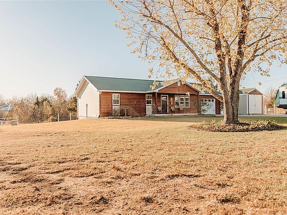 Located just 12 miles from Ft. Leonard, this well-maintained and updated 3-bedroom, 2-bathroom home offers numerous extras! Perfect for animal lovers, the fenced backyard and hoop building with electricity are set up and ready for your pets. Relax while watching the kids or animals play from the updated back deck, now featuring windows, a space heater, and a screen door. Inside, the open and welcoming floor plan creates a cozy atmosphere. The home comes with washer, dryer, and other furnishings, ensuring a move-in ready experience. With a completed termite inspection and HVAC serviced and cleaned, peace of mind is assured. The property is beautifully landscaped and showcases freshly painted cedar siding, adding to its charm. This is a wonderful opportunity to enjoy a comfortable and convenient lifestyle with space all on one level and country living.