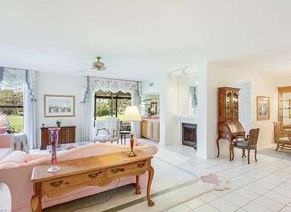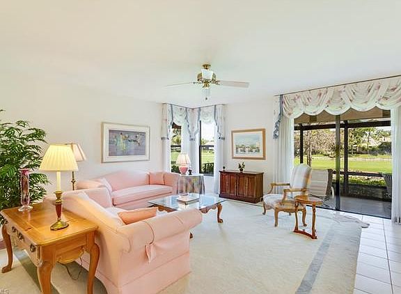 Panoramic lake and golf course views! Welcome golfers and non-golfers to paradise in this gated community 'The Forest'. Furnished 3Bd/2Ba bright first floor unit, 2 car garage. Large great room w/ built-in wet bar, wood burning fire place, & sliders to the enclosed lanai w/ private views. Kitchen offers plenty of storage, w/ quartz countertops, refaced cabinets, eat in kitchen overlooking golf course and lake, formal dining area w/ custom built-in wall unit & shelving. Master suite offers dual sinks, large walk-in shower, 2 walk-in closets. Split second & third bedroom which is separated by second bath offers complete privacy for your guests. Inside laundry room w/ extra storage cabinetry. Fairway Woods residents have access to their own community heated pool, spa, & building for social activities. Memberships are available, but 'NOT MANDATORY: 2 championship golf courses, dining, fitness center, social activities, tennis, & bocce ball. Finest of South West Florida living in a location, close to beaches, shopping, SWR airport, home of the spring training of the Boston Red Sox & Minnesota Twins, & two state colleges, Florida Gulf Coast University/ Florida SouthWestern College)