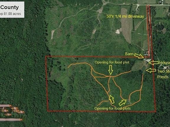 Here is your opportunity to own a turn key 2300 sq ft hunting lodge that sits remotely on just over 80 acres!! This Alpena County property is loaded with deer and turkeys. The 4 bedroom 2 bath features hardwood floors, knotty pine interior, ceramic baths and a 16' bar with kegerator. There is a smaller deck and balcony out the front and large covered ones out the back that view the large yard and the two stocked ponds. Home comes equip with remote start diesel back up generator. There are a couple sheds and a newer 24'x36' barn with 11' sidewall and 3 10'x10' overhead doors. Along with the barn is a brand new in the box solar power system that hasn't been hooked up yet. The property is thick and has a good trail system with many openings that will make excellent food plot locations The seller is very motivated and wants everything gone. There is a tractor and implements that are negotiable with this sale. Other items to possibly go with the sale are the TV's, furniture, pool table, beer mirrors, and even 2 gun safes. This is one you have to see! ***All information is not warranted or guaranteed and aerial map is a property layout and not a survey