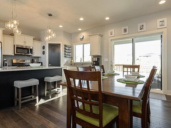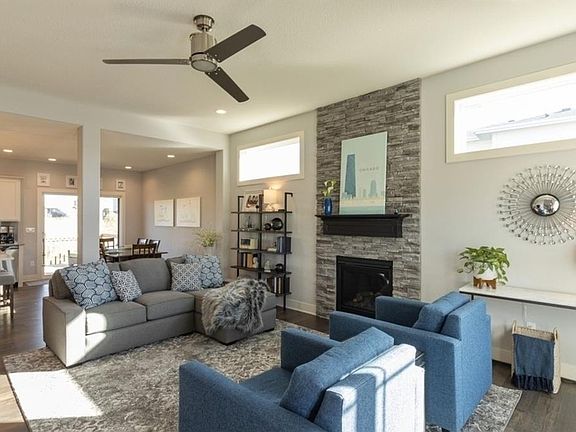 What a gem! This beautiful 1.5 story home has it all! Upon entry, you are welcomed into the bright living room with a gas fireplace as its focal point. You'll notice attention to detail with high windows to allow for extra light while protecting privacy. The main floor owner's suite is tucked away & the closet offers a pass-thru to the laundry room for added convenience. The kitchen boasts quartz countertops, pantry, & SS appliances (gas oven). The dining area (with access to the covered deck) round out the main level. Upstairs are 3 bedrooms, full bath, & loft area that is perfect for work, play or media. The lower level has amazing finish: family room, 5th bedroom, 3/4 bathroom, & flex room currently used as a workout room, but could easily be a 6th bedroom. Fully fenced yard and the home backs to prairie grass which adds extra space between neighbors. Added bonus: a south-facing driveway. No matter what stage of life you are, this home hits the mark--you'll never have to move again.