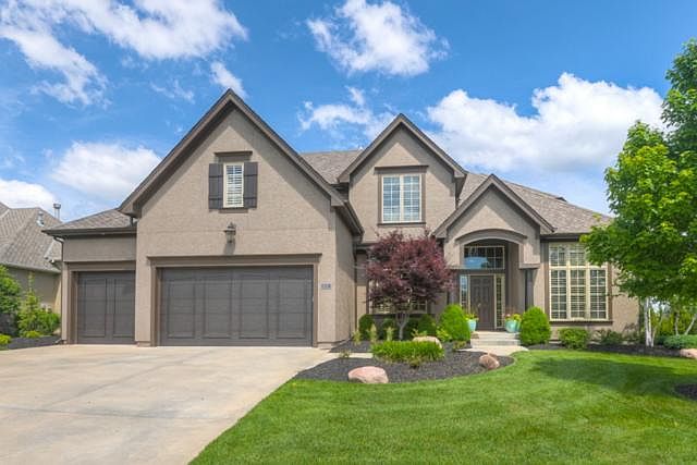 Fabulous 2 Story with the "WOW" factor. This open floor plan is great for entertaining. Approx 5000 sq.ft that sits on nearly a 1/2 acre cul-de-sac lot. Loads of upgrades: Plantation shutters thru-out entire home, iron spindles, granite countertops, generous architectural trim detail, custom knotty alder cabinetry, hand cut stone fireplace, Pella low-clad windows, designer finishes thru-out. Relax in the beautiful screen Lanai w/ fireplace. Amazing finished LL with Media room, family room and fully equipped bar. Includes 5th bedroom and full bath. This home is nestled into this beautiful subdivision that features two large lakes. In the new Blue Valley Southwest school district. Minutes from schools, shopping and highway access. WHY BUILD WHEN YOU CAN MOVE RIGHT IN? Immaculate home...hurry it wont last!