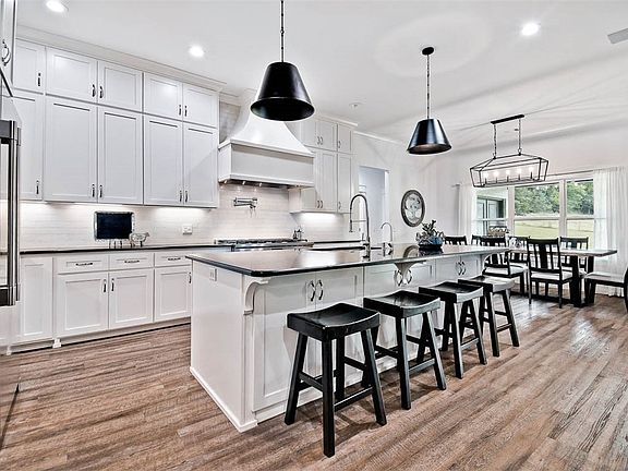 features chef’s kitchen w/8-burner gas range, double ovens, built fridge/freezer, industrial vent hood & a huge pantry. Luxurious primary suite w/dual shower, his/her lavatories, large closet w/access to laundry room of your dreams. 16x21 bonus room w/a murphy bed can be 4th BR or bonus room. Guest area w/dressing space, jacuzzi tub, private shower. Energy-efficient, spray foam insulation. Farm also has 1400SF, 2BR/1BA older home w/2 living areas. 30x50 metal shop w/concrete floor & 220-volt electricity. 14x50 RV enclosure. $100k+ value in hardwoods (report attached) Also Listed as Land MLS# 1296914