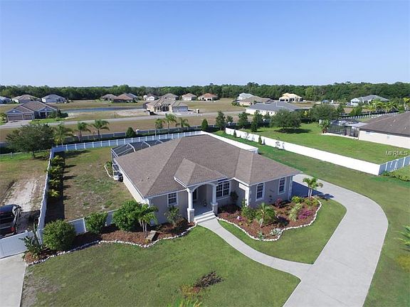 RARE TO THE MARKET in charming Stewart Subdivision, this lovely 3 bdrm, 2 ba house on nearly an acre has multitude of features. Move in ready home is a must see with it's over-sized fenced in backyard, freshly painted exterior & beautiful landscaping leading to a side entry 2 car garage. Enjoy no HOA or CDD fees in this home as well as limited deed restrictions allowing for RV & boat parking. This property includes free water for irrigation as well as lawn mowing and landscape maintenance free of charge until 2019. The main living space is open, light & bright with many fine touches. The split plan layout offers vaulted ceilings, ceramic tile throughout main living area & new carpet in bdrms. Gourmet kitchen overlooks great room and morning room with a separate dining room. Beautiful wood cabinetry, granite counter tops and stainless steel appliances adorn the kitchen. The main living area features French doors leading to outdoor retreat boasting a sparkling heated pool and large lanai. You'll enjoy peaceful views of the over-sized, fenced backyard. The large master suite features crown molding, wood grain laminate flooring & a peaceful sitting area with double doors leading to the pool lanai. Luxury awaits you in the master bath with a large walk in shower, separate garden tub, double sinks & walk in closet as well as a large linen closet. Located just east of I-75 with easy access to Bradenton, Sarasota, St. Petersburg, Tampa & Brandon. Just minutes from everything the Suncoast has to offer.