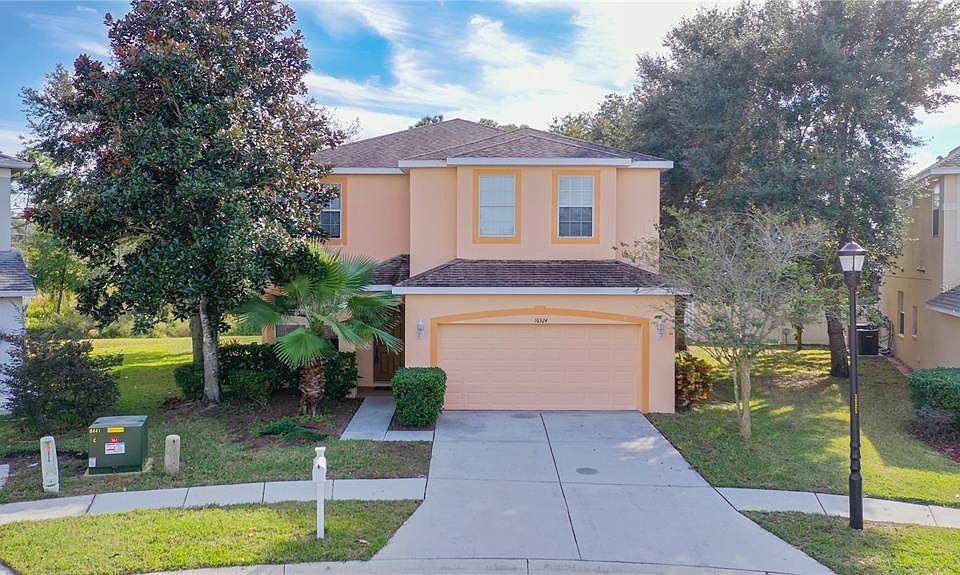 Deerfield Lakes is located conveniently near the Veterans Expressway and across Hwy 52 from Land O Lakes. This home is spacious and move in ready, located on a cul de sac. It offers 2253sq ft, 4 bedrooms, 2 1/2 baths, 2 car garage, LARGE BACKYARD, formal living room, formal dining room, family room, eat in kitchen, inside laundry. All bedrooms and two full baths are located on the top floor with a half bath on the main floor for your guests! The master has walk-in closets and a master bath with a dual sink vanity, garden tub, and separate shower. The kitchen offers oak cabinets, granite counter tops, eat in space, and a closet pantry. The kitchen has a sliding door that opens view to the back yard and patio area. Laminate flooring in dining room, including washer and dryer, large storage closet in hall and plenty of storage space under the stairs, cathedral ceilings, view of family room from upstairs, all bedrooms are large and spacious, ceiling fans, nice light fixtures and irrigation system. LOW HOA, NO CDD!!! Nice playground and picnic area! Room for pool, play set or garden in the back yard