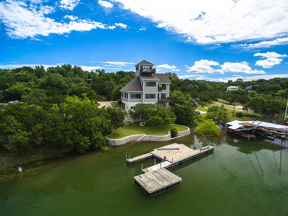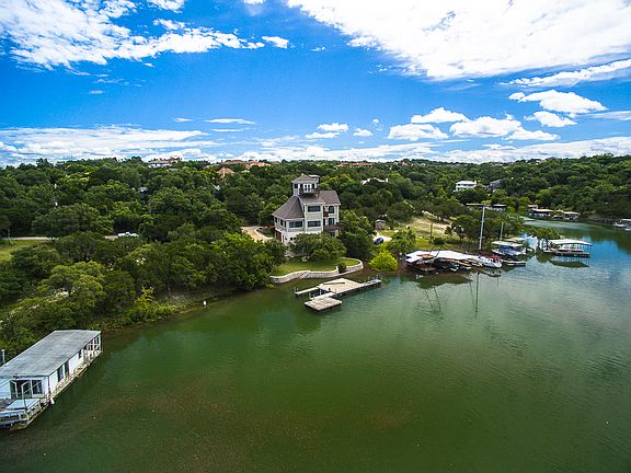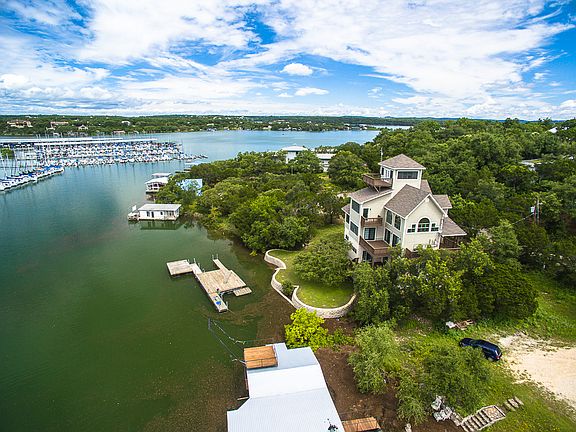 Incredible views from this Lake Travis waterfront property! Outstanding outdoor living with four levels of decks. Head to the crow's nest and deck to enjoy the amazing Lake Travis view this home offers! Oversize garage for boat or RV parking. 13x17' workshop off of garage! Additional photos available! Property is on no wake zone of Lake Travis - take your boat to nearby restaurants!