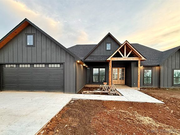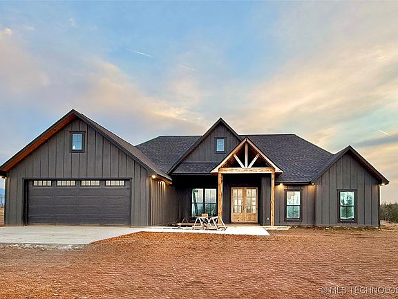 Step into luxury with this meticulously crafted custom new-construction home, where elevated design meets unparalleled comfort and craftsmanship. Nestled on 2 peaceful acres, this beauty offers 4 bedrooms, 2.5 bathrooms, 2,004 ft² of refined living space, and a rare 575 ft² heated and cooled garage, perfect for vehicles, hobbies, or a climate controlled workshop. FEMA approved storm shelter. The stunning open concept floor plan welcomes you with designers choice wide vinyl plank flooring, high ceilings, and expansive windows that flood the home with natural light. Every room is enhanced by upgraded lighting packages, premium fixtures, and a seamless flow ideal for both everyday living and entertaining. At the heart of the home lies the gourmet chef’s kitchen, featuring custom on site built cabinetry with soft-close hardware, granite countertops, a large center island for prep and gathering and a walk in pantry offering ample storage. The master bedroom offers a spa-inspired ensuite bathroom, a large walk in tiled shower, extra deep stand alone bathtub for soaking, dual vanities, and a generous walk in closet. Secondary bedrooms are thoughtfully positioned for privacy and comfort. Additional features include, energy-efficient construction and modern insulation, granite surfaces throughout entire home, high-efficiency HVAC system, and covered outdoor living space perfect for enjoying the sweeping sunsets, breathtaking panoramic mountain horizon views and a picture perfect entire view of Cavanal visible from multiple vantage points in the home. Every inch of this custom build reflects intentional design and superior craftsmanship, creating a one of a kind property where luxury and livability come together seamlessly. Call today for a showing.