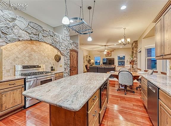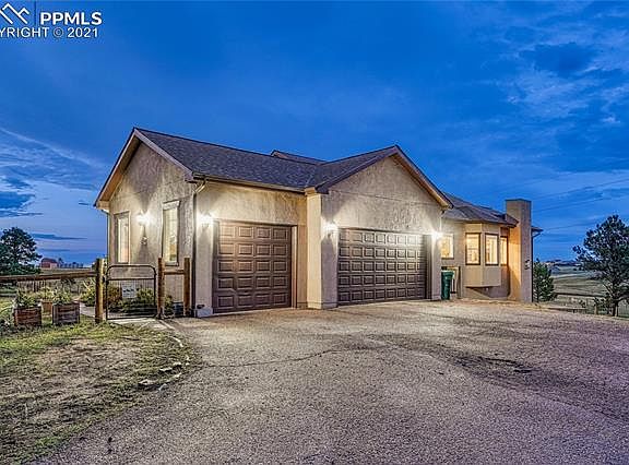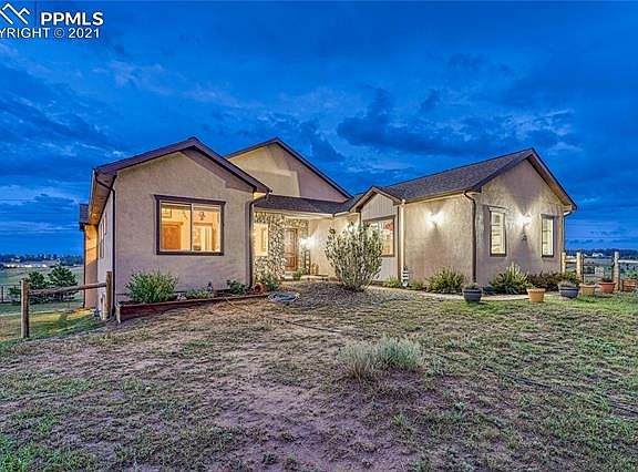 *5 Acre lot. *5 Bedrooms * 4 Bath *3 Car Garage with 15ft Ceilings *New Loxon Paint on Stucco *New shed *Newer roof(2019) *2 Laundry Rooms * Hand troweled walls on main level *Gourmet Kitchen with 40 inch dual fuel gas stove and double oven *Cherry Hardwood on main level *9 ft ceilings in lower level. *Solid wood 8 ft doors throughout *Ductwork recently cleaned and aerosealed. *Approximately 3.5 Acres completely fenced in. *Instant hot water heater *extra hot water heater used as a holding tank so you don't run out of hot water. *New Carpet in the lower level. *Central AC Have you been looking for a 5 acre property without the restrictions of HOA? You have found it! This well kept ranch home was well designed and built with high end materials and fixtures. Central AC. Upgraded Pella doors and windows. Alder cabinetry, solid doors, and trim. With over 4700 sq ft of luxury living without any HOA or covenant restrictions, this special home offers 5 bedrooms (2 up and 3 in lower level), 4 baths and plenty of storage. You'll love the huge master retreat with sitting area and beautiful master bath with soaking tub and dual showers and bench. The second bedroom upstairs offers Pikes Peak and front range views. Both the formal living room, family room and covered back deck offer amazing views of the valley and Black Forest. The lower level boasts a ton of space for a theater area, workout area, and game room. The larger, garden level bedroom with its own private entrance and walk in closet makes a perfect addition. The walk out lower level offers 2 more generous sized bedrooms that share a unique jack and jill bath with quartz, comfort height counters. The added benefit of a laundry room on each level is very convenient. 3.5 of the 5 acres is completely fenced in, and the side yard offers a gardener's dream with raised beds(with hail protection) a greenhouse and a new Tuff shed(2020) Home warranty to be provided for buyer.