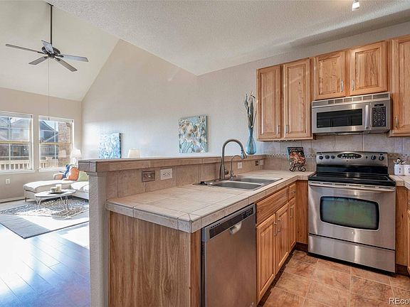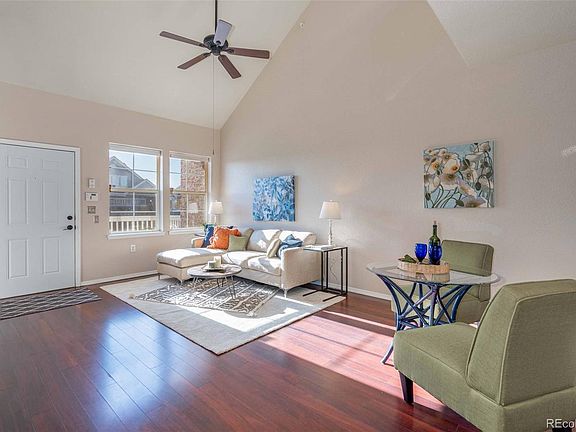 Welcome to this immaculate condo in The Colony at Cherry Creek! Enjoy a phenomenal location off Arapahoe and Parker Road, less than a mile from shopping and dining. The front porch offers stunning community views as you watch the world go by. Soaring vaulted ceilings and cherry laminate floors greet you and create a warm and welcoming atmosphere. Open to the kitchen, the living room sits in front of two oversized windows offering sweeping natural light. A gas fireplace encased in tile under a built-in mantle ensures you will stay cozy during the cool winter months. The casual dining area adjacent to the kitchen ensures guests will always have a seat at your table. The kitchen offers statement tile floors, stainless-steel appliances, and bright wood cabinets to inspire your culinary creativity as you whip up a meal. A formal dining area accented by a brick wall and king-sized arched window set the scene for entertaining. When you’re ready to wind down for the day, retreat to the primary suite. Ample room for a seating area, a large bed, and a walk-in closet allows you to create your own private oasis. An en suite full bath with hall access entices you to wash the day away. A second spacious bedroom on the upper level features a large arched window and high ceilings to ensure your loved ones will always feel at home. A skylight-brightened loft would make a perfect office or a wonderful bonus room. The second full bath upstairs ensures privacy for your loved ones. Keep your vehicle shielded from the weather with a detached one-car garage! Community amenities include a centrally-located pool and trails abound to make the most of the Colorado weather.