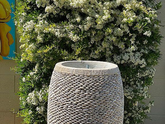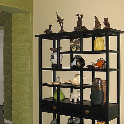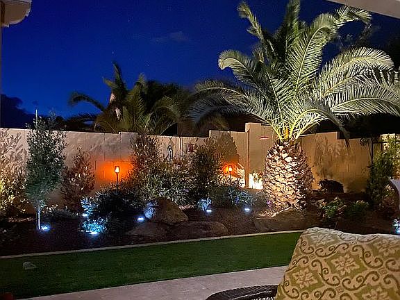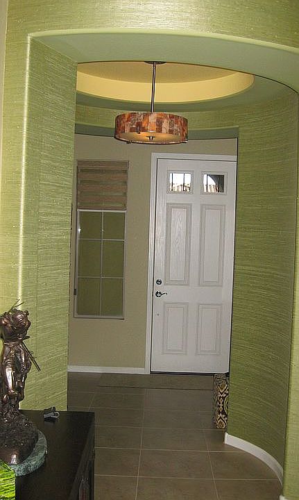 Rambler with 2 bdrms + den/0ffice. Fiesta Plan. Ledge stone wall in great room + on island. Garage cabinets. Tiled Golf cart garage/office/work space. Front and back landscaping. Removed center post on patio to expand view of back yard. Private walled yard. Totally repainted interior in neutral colors. Granite and quartz countertops, Wallpaper added in entry foyer. Irrigation. 2 full baths plus powder room. Extended garage