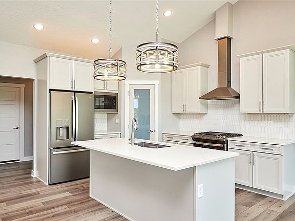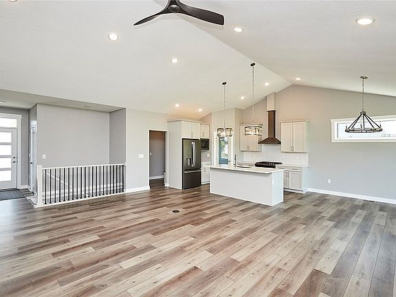 Gorgeous new construction ranch walkout by Eden Custom Homes. 2763 fin. sq. ftg., 5 bedrooms and 3 full baths (3 BR up and 2 down). Spacious eat in kitchen, featuring quartz counter tops, under cabinet lighting, island with sink, soft close drawers, gas stove with hood, slate GE appliance package, walk in pantry with laminate shelving & off white cabinets. Large window package. Luxury vinyl flooring throughout kitchen and living room. Locker set up off of garage with quartz top. Nice sized master BR, featuring tray ceiling, large walk in closet, double vanity bath. Black finishes for drawer pulls, towel racks, lighting fixtures, etc. Large living room basement with a wet bar and under cabinet refrigerator. Covered composite deck with black aluminum rails. Extremely energy efficient, foam insulation box sills and insulated garage. Radon prep included. Complete Irrigation system included.