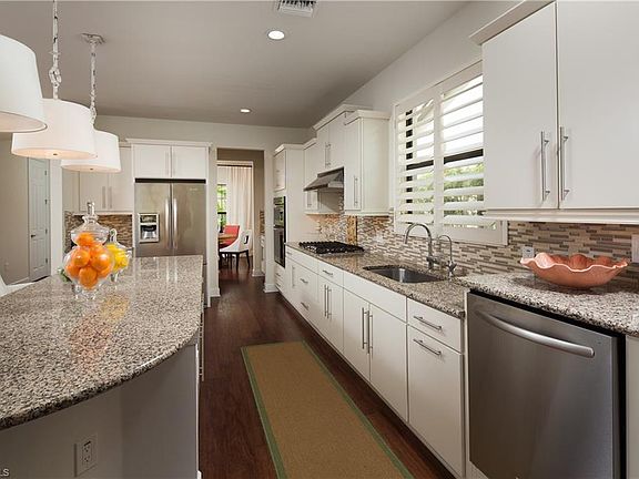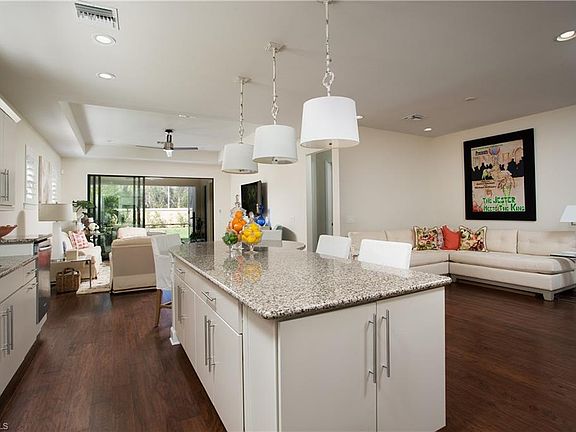 ONE OF CAMDEN LAKES FINEST HOMES. This stunning home with its amazing open floor plan, three bedrooms + den, two bathrooms and loads of upgrades truly shows like a model. The well-appointed kitchen with large island and adjacent family room were well executed to become a more intimate gathering area for casual entertaining. The gourmet kitchen boasts a wall oven and micro/convection oven, French stainless steel counter depth refrigerator, a five burner gas cooktop and walk-in pantry. The master suite offers a custom designed walk-in closet and bathroom complete with tile flooring, granite countertops and an enlarged master shower with four body sprays and frameless glass door. The extended outdoor living area overlooks an enormous fenced-in backyard for pets to play. Enjoy the exclusive clubhouse complete with kitchen, resort style pool and spa, state-of-the-art fitness center, covered picnic pavilion and fire pit all for a very low HOA fee. The schools that are close by are some of the finest in the county. World-class shopping and dining at Waterside Shops, Mercato and 5th Avenue South as well as our world-famous beaches and renowned performing arts are just moments away.