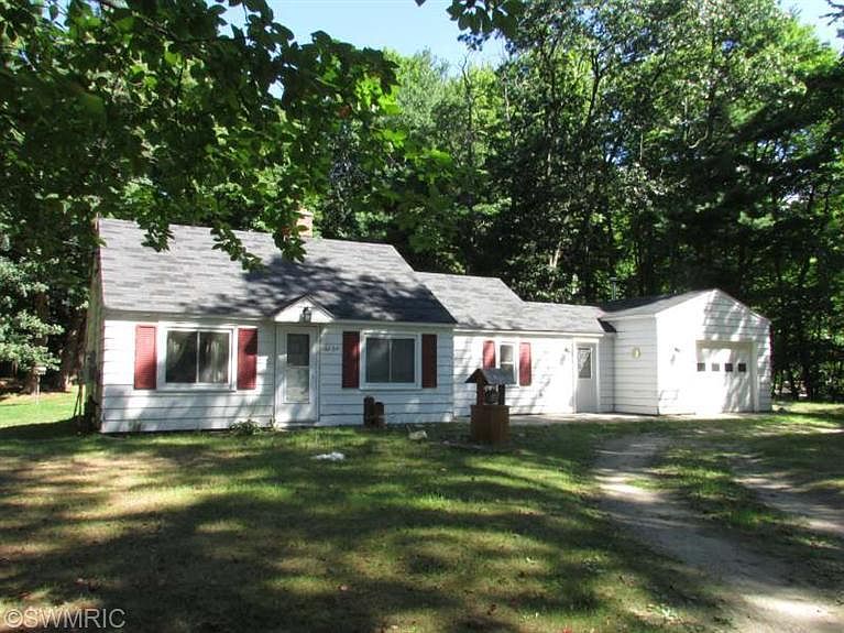 Affordable 2 possibly 3 bedroom home in Spring Lake Township. Many updates including vinal siding, plumbing, electrical, windows, paint,flooring, and drywall. The bikepath goes right in front of this nearly 1 acre lot with a backyard wooded setting. Turnaround driveway, attached 1 stall garage with wood stove, and large storage shed.