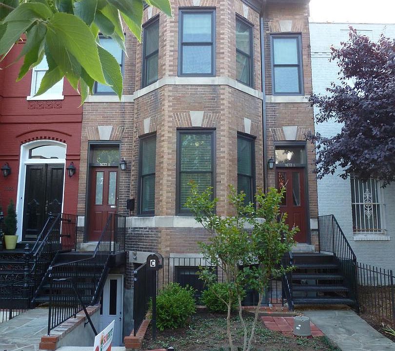 Bay front Victorian Flat in Logan circle available. This two bed two bath first floor apartment residence is a stones throw from Logan Circle and all the available shopping, grocery and restaurants while also Metro and walk/bike/Uber accessible to all of central Washington. This boutique building hosts three 1400 square foot two bedroom apartments. The available unit is the first floor Unit B. You enter into a front living room with working fireplace, built in book shelves, Bay front windows, and hardwood floors. A hallway connects to the bedrooms and on-suite and hall baths. The rear of the apartment is a massive modern gourmet kitchen, with dinning room space and access to the rear porch and rear patio. Central heating and cooling, in unit washer and dryer makes this a perfect in town residence. Rear off street parking available for additional fee. Available August 1.
