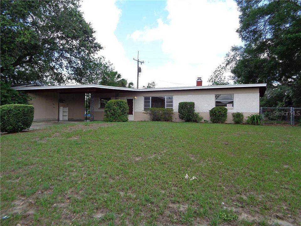 New Price! Owner is motivated to sell this Block home ready now! 3 bedrooms all with LED ceiling fans and lights and nice sized closets, 2 full baths. TERRAZZO FLOORS THROUGHOUT! All wood cabinets in kitchen. No appliances. Inside laundry room. Home has "split AC heat pump" that cools the home nicely and heats it too, plus an oil heater. 2 car carport, Fully fenced back yard. Large storage shed off the carport. Close to schools, fire station, easy quick commute to downtown Orlando. Clear Lake Park nearby.