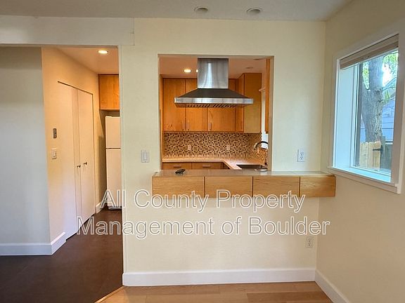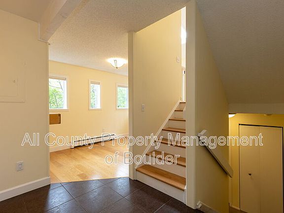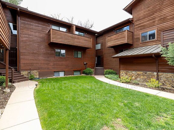 SW-corner townhouse in 8-unit complex - superb location close to trails, downtown, and CU. Three bedrooms, two full bathrooms over five half levels. Upper level is master bedroom with balcony, skylight, connected bathroom and walk-in closet; middle levels have entryway, open kitchen to dining room to living room, with the living room having a cathedral ceiling, skylights, and wood fireplace: lower levels have two bedrooms with big closets, full bathroom. Recent updates include both bathrooms, kitchen with maple cabinets, hardwood floors in the dining room and living room, and tiles around the fireplace. Washer/dryer included. Fenced landscaped yard with deck and patio on SW corner. Detached garage plus one off-street compact parking space. Non-smoking, cats allowed but no dogs. All lease applicants will submit a supplementary pet application through Pet Screening that will indicate one of the following: 1) that you have pet(s); 2) that you have an ESA; or 3) verify that you have neither pets nor an ESA. This Pet Screening application must be completed and an associated fee paid prior to our consideration of your application (there is no associated fee for no pets/ESA). Approved applicants with pets pay a one-time pet processing fee of $150 prior to lease signing; and advertised rent will be increased by $25/month/pet.