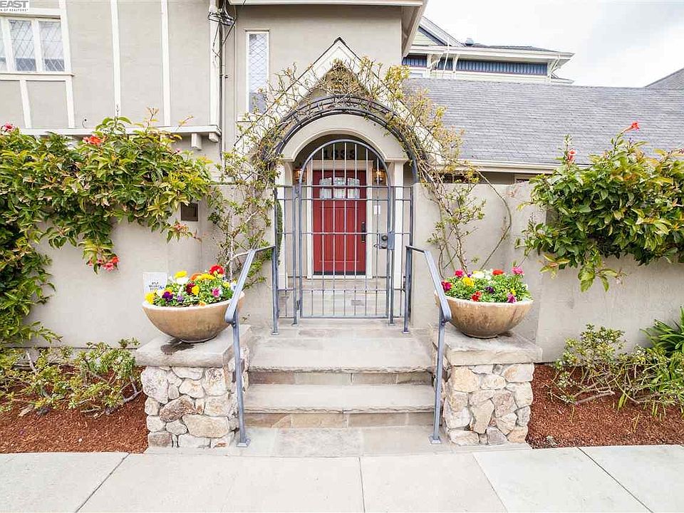 Besides wonderful curb appeal, this home has much to offer. Flexibility is the name of the game here. As you look at the front of the house, the master bedroom is on the left side, upstairs, and opens up to a patio which is built on top of the attached garage. The living room is spacious and welcoming. How about those ceilings? Vaulted and glorious. Are you looking for an in-law unit or an au-pair set up? These areas are on the right side of the house. The lower room is currently staged as a den, and has a full bath. Above that is the 3rd bedroom, also with a full bath. The kitchen has an open floor plan, amazing lighting, lovely stainless appliances. The walk-around path completely encircles the lovely garden. There's an entertaining/outdoor/play space to the left of the garage! Enjoy the above ground lap pool w/changing room, closet and cabinets in the detached carriage house. You'll have prime seating as you and your friends watch Alameda's 4th of July parade!