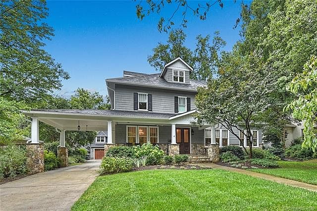 Exquisitely designed, custom built & immaculately maintained - this stunning home offers the modern conveniences you require & all the charm of historic Dilworth! The cedar shake & stone exterior, lush landscaping, porte-cochere & covered "rocking chair" front porch provide unbeatable curb appeal. Interior features include high ceilings, gorgeous hardwoods, heavy moldings, fresh neutral paint & great natural light! Cherry kitchen features granite countertops, large island, & high-end SS appliances including SubZero refrigerator, Viking range & Bosch dishwasher. Main level owner suite boasts home office w/coffered ceiling, 2 large WICs, spa bath & spacious bedroom w/door to covered veranda. Fabulous secondary bed/bath layout. Bonus rooms on both 2nd and 3rd floors - tons of living space to meet your needs!. Two-car detached garage w/room above for future living space. Outdoor living spaces include covered veranda off den & master, rear patio, patio off sunroom & 2nd story patio.