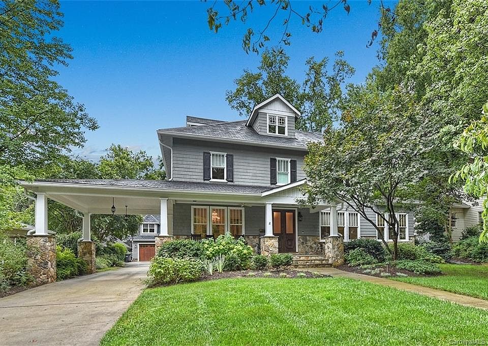 Exquisitely designed, custom built & immaculately maintained – this stunning home offers the modern conveniences you require & all the charm of historic Dilworth! The cedar shake & stone exterior, lush landscaping, porte-cochere & covered “rocking chair” front porch provide unbeatable curb appeal. Interior features include high ceilings, gorgeous hardwoods, heavy moldings, fresh neutral paint & great natural light! Cherry kitchen features granite countertops, large island, & high-end SS appliances including SubZero refrigerator, Viking range & Bosch dishwasher. Main level owner suite boasts home office w/coffered ceiling, 2 large WICs, spa bath & spacious bedroom w/door to covered veranda. Fabulous secondary bed/bath layout. Bonus rooms on both 2nd and 3rd floors – tons of living space to meet your needs!. Two-car detached garage w/room above for future living space. Outdoor living spaces include covered veranda off den & master, rear patio, patio off sunroom & 2nd story patio.