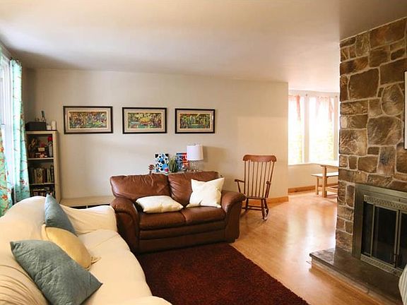 Move in ready 3 bedroom, 3 bath house. First floor has traditional living room, dining room, and kitchen. New laminate flooring. Freshly painted. Also has a large addition with a family room, full bath and laundry room. 2nd floor has 3 bedrooms and a full bath. Basement is clean and dry. Unfinished, but has the 3rd full bath. Yard leads to the woods on a terraced hillside. Appliances are included. Central AC.
