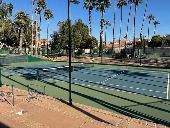 Experience resort-style living in this charming townhome located in the highly desirable Val Vista Lakes community. This one-bedroom, one-bathroom gem offers an open living space w/ soaring vaulted ceilings, dual-pane glass windows & sunscreens for energy efficiency. Enjoy the convenience of an attached garage & two private balconies one accessible from the great room & the other from the spacious primary bedroom. Residents of Val Vista Lakes enjoy an array of unparalleled amenities, including a clubhouse, lap pool, lagoon beach, spa, waterfalls, tennis courts, pickleball courts, racquetball courts & a state-of-the-art fitness center. Stroll along the scenic biking & walking paths or relax by the community pool & spa. With its prime location near shopping, dining & major highways, this townhome offers the perfect blend of comfort & luxury. Don't miss your opportunity to call this incredible community home!