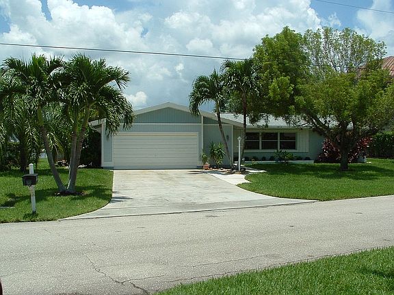 One of the best locations in the Cape! 1000 feet straight out to the river. Located on the Bikini Basin, you have 600' of open water behind you, so no neighbors staring across the canal into your very private fenced yard. House is on a protected basin across the street from the river and has a 20,000 lb, 4-motor lift ready for your boat, plus there is dock space for a friend's 40+ footer to tie up too! The 3 BD/3 BA house (each BD has its own bath!) has 1941 sq ft finished, original terrazzo floors, separate dining room with wet bar, an office/bonus room plus lanai and 2-car garage. Out back is a fiberglass pool, full-width decks along the sea wall and dense palms lining both sides of the yard. On a cool night hang out around the fire pit down by the water. This great location in the Cape's hot Yacht Club neighborhood has easy access to everything. Walk to the downtown entertainment and stores, drive 1 minute across the bridge to Ft Myers or 5 minutes down to the Yacht Club, or head out for unlimited walking and biking. It's surrounded by million-plus dollar homes - live in it or build your dream home here. Furnished available. Owner is a licensed FL RE agent.