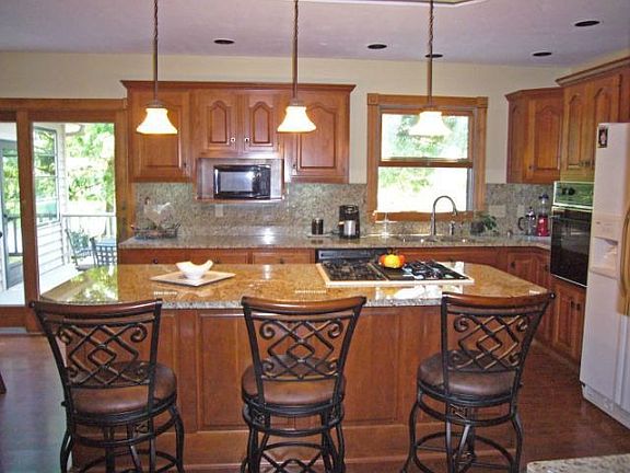 Gorgeous park like setting with 3 level deck & hot tub. Granite counters in kitchen, cherry cabinetry through out. New carpet in living room & dining room in 2012. Family room w/skylight, vaulted ceiling & built-ins. 1st floor laundry & den. Florida room. Updated interior lighting - lots of recessed. 3 bedrooms with walk-in closets. Walk-out finished rec room. Fenced yard. 3 car garage. Seller is licensed Realtor.