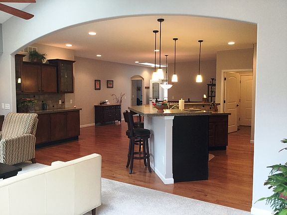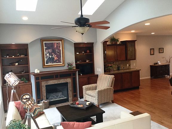 Stand alone Villa with open floor plan, vaulted ceilings, archways and skylights. Built-in shelving around the gas fireplace in the great room with sliders to the deck. Gorgeous built-in hutch. Beautiful kitchen with granite counter tops, soft close drawers, elevated, easy access, dishwasher, breakfast bar and spacious pantry. Outstanding quality in craftsmanship throughout! Trey ceiling in the master suite with walk-in closet. Bright finished basement with family room, 3rd bedroom with walk-in closet, 3/4 bath, lots of storage and utility sink. ADA tall toilets too! And so much more!