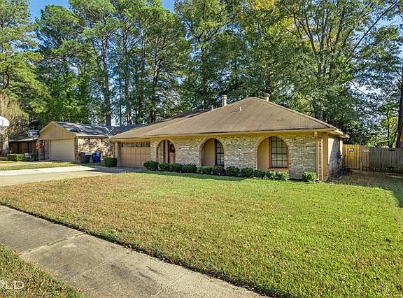 Be the first to grab this loving home just in time for the Christmas holiday! 3 bedrooms, 2 baths, warm inviting brick fireplace, open floor plan, granite kitchen countertops, remodeled master bath with large walk-in shower and a back yard with beautiful trees! Large sliding glass door in the living room lets in lots of light, eat-in kitchen and living-dining area give an option for either-or or both, breakfast bar, barn doors lead into a dining room, den or what is the 3rd bedroom (no closet), primary bedroom has access to the back patio and large windows, storage building in back yard, and a large driveway for parking extra cars.
