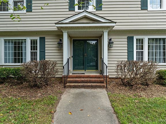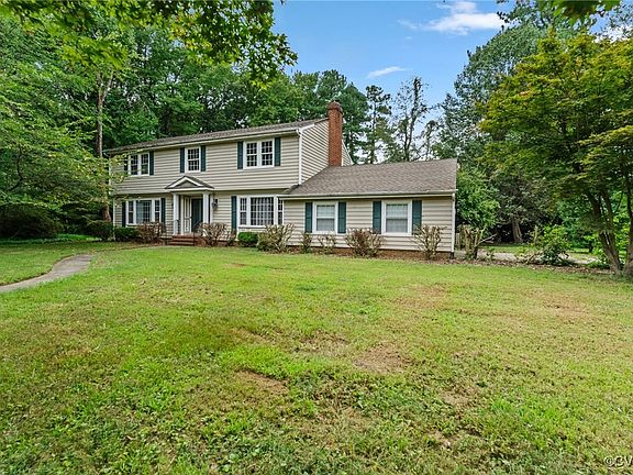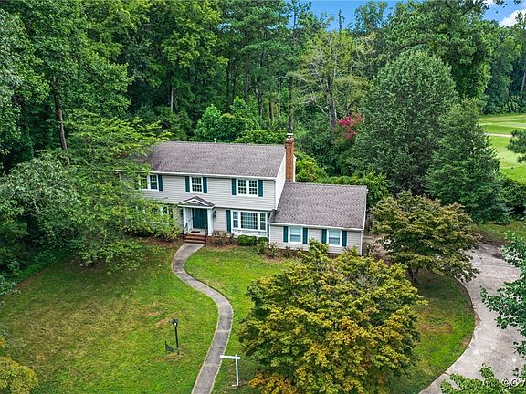 Are you looking to live on the green of a golf course and without club or HOA memberships? Then book a tour of this 5 bedroom, 3 bath and 2,852 square foot colonial sitting on over half an acre and overlooking the 3rd hole of the Dogwood Trace Golf Course. This spacious and stately home also includes a 20' x 13' sunroom and attached 2 car garage. Enter the double front doors into the slate foyer with multiple coat closets, and choose between relaxing in the living room or large family room with fireplace. The kitchen with gas cooking provides a breakfast nook/eat-in area, coffee bar, pocket door access to the formal dining room, and a passthrough to that sunroom. A full bath and laundry room with workspace and cabinetry complete the first floor. Upstairs are 5 sizeable bedrooms, including a primary with full en suite bath. The hallway includes a double vanity bathroom and two closets, one cedar-lined. A long concrete driveway welcomes you from the cul-de-sac. Walk to Petersburg High School. Make sure to ask about the transferrable Cinch home warranty. A little love and affection will return this versatile colonial and its beautiful backyard to its original shine. Come see it today!