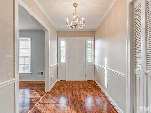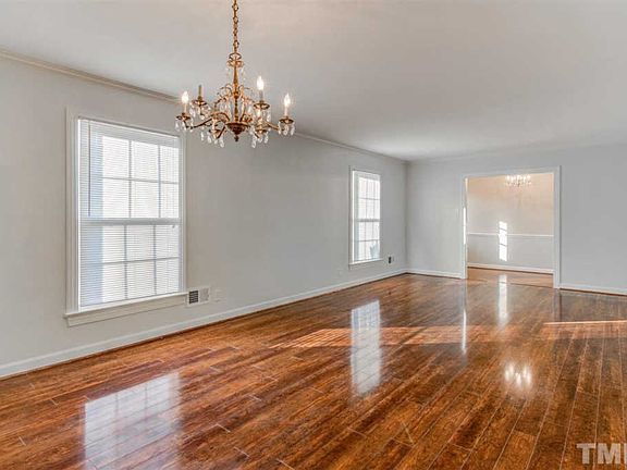 Exquisite brick ranch on private 1.25 acre lot*NEW Roof*Windows*HVAC*Cabinets*Tankless water heater*DREAM kitchen w/tile floors*granite*tile backsplash*Double oven*Loads of counter space*Amazing utility w/sink & tons of cabinets*1/2 Bath*Entry foyer*family*sep dining all w/hrdwd laminates*Family room boasts beautiful built ins & masonry fp*Inviting sunroom w/hardwood laminate floors overlooks beautiful wooded lot*Updated baths w/tile fls*tile surround*tile shower*Huge spare beds*Minutes to Clayton*MUST C!