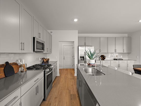 The Kingston features 5 bedrooms, 3.5 baths, large flex space and large loft. Some of the wonderful features of this home include shaker cabinets and plenty of them, quartz countertops, backsplash in kitchen, luxury hard surface flooring, owners suite w/ walk in tile shower, smart home features including a Ring Security system, smart thermostats/lock, 2" blinds throughout home, and much more!