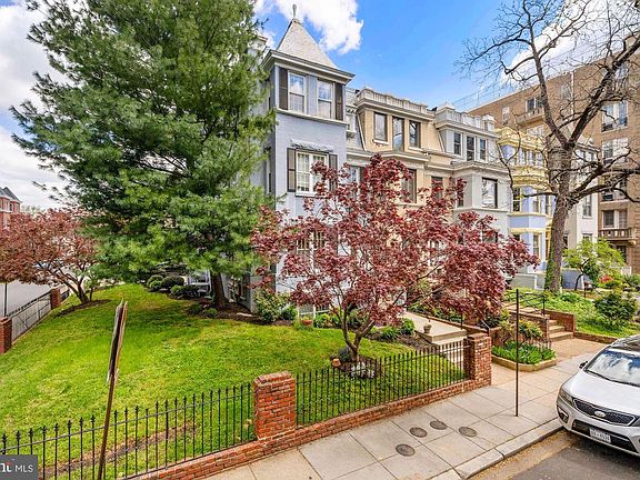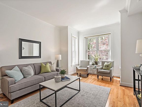 This charming, bright condo lives like a house. Located in a corner Victorian property in bucolic Mt. Pleasant, it is drenched in light from 2 bay windows & exposure on 3 sides. The generous living room boasts high ceilings, crown molding, gleaming hardwood floors, a large bay window and a wood-burning fireplace. The spacious table-space kitchen with extra tall white cabinets, task lighting, and stainless appliances is a cook's dream. The deep adjoining closet can be purposed as a pantry or extra storage. There are 2 spacious bedrooms with double closets, hardwood floors and high ceilings. The main bedroom has a triple bay window and the secondary bedroom has direct access to the garden. There is an updated bath with white ceramic tile & front-load W/D in the hall. There is also a newer energy saving HVAC system with ultraviolet light air purifier. Pre-wired for cable and internet. Pet friendly. The beautifully landscaped, private courtyard patio is ready for your summer entertaining & a large dedicated parking spot(#2) directly outside the back gate completes the picture. Condo fee $300 monthly. Located just off 16th St. in historic Mount Pleasant, it is easily accessible to Rock Creek Park, the Mt. Pleasant historic retail corridor, Columbia Heights Metro, shopping and restaurants, public transportation & all the excitement the city has to offer. Walk Score 94. Surrounded by green and on a quiet side street, our HOME SWEET HOME awaits you. OFFERS DUE WED 4/28 noon Pre-offer inspections welcome but please let listing agent know One pet per unit. Weight limit 20 pounds. Parking space is #2.