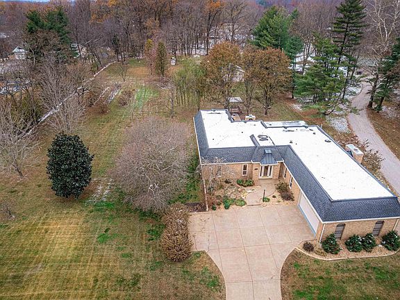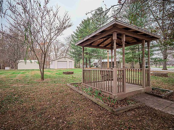 Enjoy this sprawling brick ranch located on 2 acres of Newburgh real estate, directly across the street from Rolling Hills Country Club. This expansive home offers exceptional space and functionality, perfect for a variety of buyers. Upon entry, you are greeted by a formal living room featuring a charming gas-log fireplace as the main focal point. Adjacent to the living room is the formal dining room, ideal for hosting holiday traditions. The beautifully updated eat-in kitchen is a chef’s dream, with granite countertops, a double oven, a high-end Jenn-Air gas stove-top, and quality Kemper cabinetry. The family room, conveniently located off the kitchen, is highlighted by ceramic tile floors and the second wood-burning fireplace. The sunroom at the back of the home offers a versatile space, perfect for a toy room, fitness area, or even large family gatherings. It includes a wet bar, second refrigerator, and direct access to the expansive backyard. The bedroom wing is home to all three bedrooms, the second full bath, and the dedicated laundry room. The owner’s suite offers a luxurious retreat with a large jacuzzi tub, walk-in shower, double vanity, the third fireplace and multiple closets for ample storage. The second full bath, conveniently located between the guest bedrooms, features a solid surface vanity and shower/tub combo. Head down to the partially finished basement boasting a spacious recreational room, complete with a pool table (included in the sale), perfect for entertaining. All your storage needs are covered in the additional room located in the basement. The oversized 2-car garage is pristine, featuring pull-through overhead doors on each side leading to both driveways. Needing storage for the golf cart, boat, or four wheeler? The 1.5 car detached garage with a concrete floor and pull through garage doors fits the bill! A large carport also located in the backyard is perfect for lawn equipment or other outdoor storage. 1633 Old Plank Road is a quality home on a beautiful piece of property, offering privacy and proximity to the Rolling Hills Country Club. A recent upgrade was the HVAC in 2024 and fresh paint throughout most of the home. Don’t miss the opportunity to make this stunning property your own!