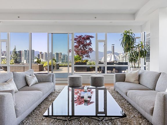 One-of-kind Olympic Village sub-penthouse offering over 4500sqft of indoor/outdoor one level living with iconic Vancouver views in every direction. This sophisticated 3 bedroom 4 bathroom home has been exquisitely re-designed with keen attention to detail and natural light enhanced by the wrap-around floor-to-ceiling windows and airy 10' ceilings. The entertainer's kitchen features a large island, custom cabinetry, stone counters, and premium appliance package. Expansive living/dining/family area with breath-taking views. Luxurious primary bedroom with over-sized dressing room and sublime ensuite bathroom. Cutting edge heating/cooling system. 3 parking stalls & 2 storage lockers. Concierge & gym. Access to the Gold Medal Club. Truly stunning home that will impress the finest of tastes.