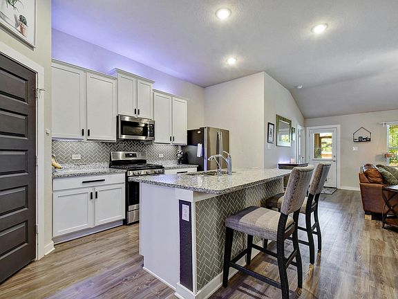 Welcome to this stunning one-story, 3-bedroom, flex room, and 2-bathroom home! It has been meticulously maintained and boasts modern finishes with tasteful updates throughout. As you step through the front door, you're greeted by a versatile flex room, currently set up as a home office. The room's shelving, enhanced with ambient lighting, creates a warm and inviting workspace. The home is equipped with Lutron smart switches, allowing you to control the lighting with ease, and solar screens for comfortability throughout the home. The heart of this home is the kitchen, a chef's delight, with stainless steel appliances, including a stove, microwave, refrigerator, and dishwasher. The kitchen island and under-cabinet lighting add to the functionality and style, making meal preparation a breeze. Plus, as an additional perk, there's a large freezer in the garage for extra storage. The primary bedroom is a true retreat, featuring bay windows that flood the room with natural light. The ensuite bathroom is equally impressive, with an extended shower, dual vanities, and a spacious walk-in closet. The two additional bedrooms are well-appointed and share a beautifully maintained bathroom. The open-concept living room is bright and airy, perfect for both relaxation and entertaining. A washer and dryer is available, for added convenience. Outside, you'll find a screened porch area ideal for enjoying leisure moments, an outdoor shed for additional storage, and a privacy fence that ensures your outdoor space is as peaceful as the interior. This home is a perfect blend of modern convenience and thoughtful design, offering everything you need for comfortable living -- it even includes a water softener! The neighborhood amenities are a plus with a community pool! Located minutes away from healthcare, shopping, dining, and Six Flags Fiesta Texas! Schedule your showing today!