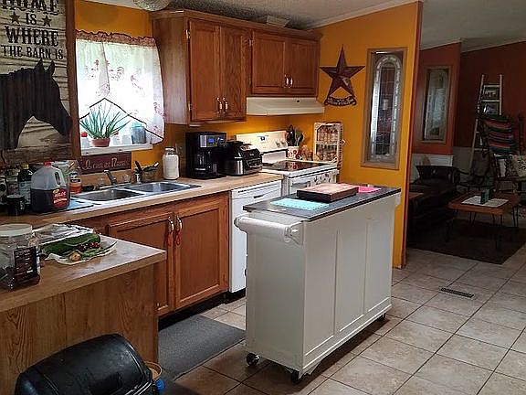 Skyline Double Wide. MUST BE MOVED 230 sq ft Covered porch. Great layout with Master on opposite end of other 2 bedrooms and 2nd bath. Large Living room, cathedral ceilings, tile throughout home, wood burner. All appliances go with home. Newer 90% High Efficiency furnace and water heater.