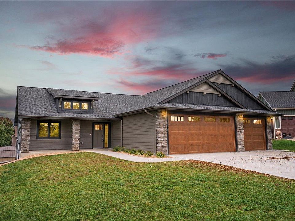 This stunning, practically new 5-bedroom home on a serene cul-de-sac is a must-see! Only one year old, this beauty boasts oak flooring and cabinetry, a lovely primary suite, and an abundance of storage. The elegant black windows add a touch of sophistication, while the zero entry from the front door and garage ensures easy accessibility. The open floor plan highlights a gorgeous kitchen with quartz countertops, stainless steel appliances, and under-cabinet lighting. Entertain effortlessly on the maintenance-free deck, and enjoy the fully finished walkout lower level that was finished in June 2025. This home is perfect for those seeking both style and functionality. Oversized 3 car is insulated and ready to be heated.