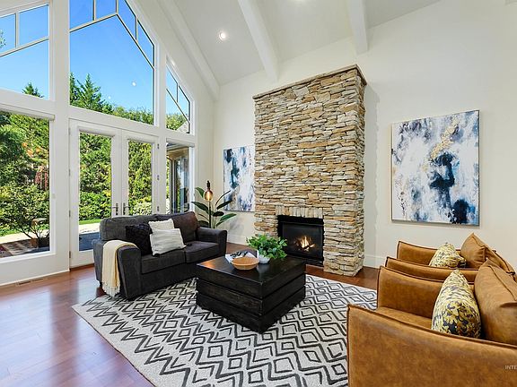 An ultra-private waterfront home with a 5-ton rock feature taking center stage through huge picture windows. Refined elegance meets modern comfort in this perfectly positioned custom home on a tucked-away corner lot. Enter through a vaulted great room that flows into an open-concept where rich craftsmanship, high-end finishes, and 3 fireplaces charm the senses. The kitchen features WOLF appliances, full-height cabinetry, and an oversized quartz island ready for entertaining. The secluded primary suite has a luxurious waterfall bath, a fully outfitted walk-in closet, and private patio access for serene mornings by the water. Each additional bedroom includes its own en-suite bath, creating a private retreat for family and guests. The upper level has a hidden room behind the media center. Outdoor living is elevated with a covered patio overlooking perfectly manicured landscaping and serene surroundings. Spacious 4-car garage and access to Rivers End’s premier amenities - pool, clubhouse, and scenic trails.